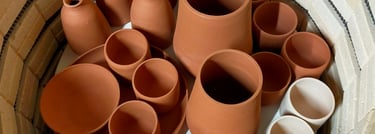 Je façonne mes pièces principalement au tour de potier avec des terres locales dans un souci de fabrication responsable. Du dessin à l'émaillage, tout est fait à la main de façon artisanale ce qui leur confère un aspect unique.
