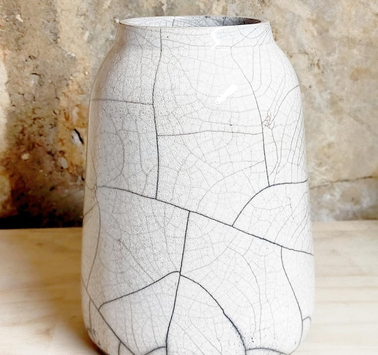 Je réalise ponctuellement des pièces selon la technique du RAKU aux côtés d'Olivier Oet, ajoutant à ma technique cette touche de magie du feu.